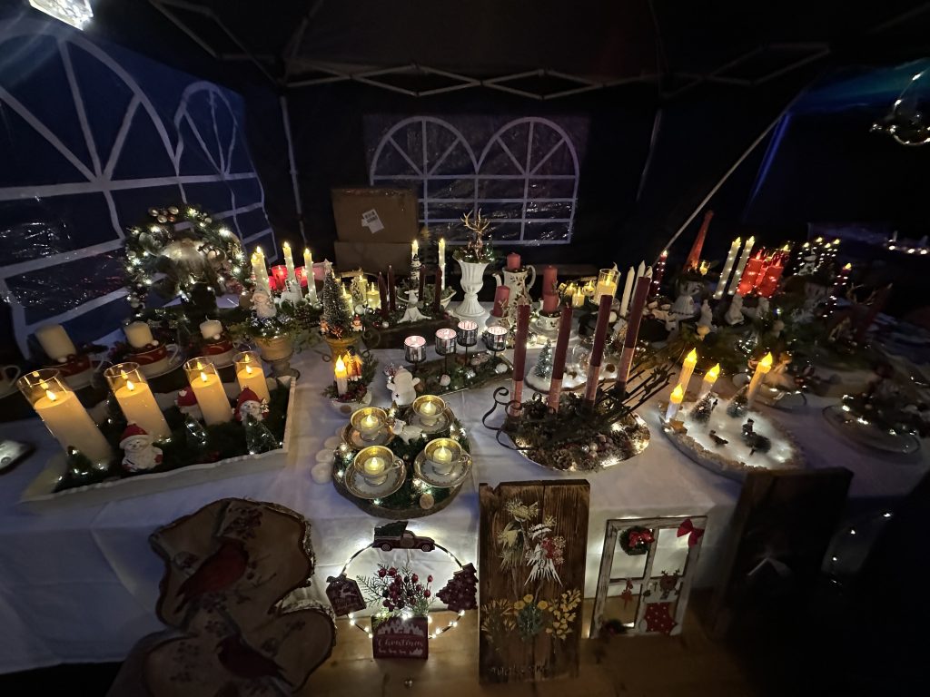 Stimmungsvoll und andächtig begleitete Jakob den Markt mit seiner Drehorgel, wodurch bekannte Weihnachtslieder erklingen konnten, und die Kinder sangen begeistert mit. Die Stille des Moments verband sich mit dem leise knisternden Feuer und dem Glitzern der Lichter – ein harmonisches Zusammenspiel, das Herz und Sinne berührte und Erinnerungen an vergangene Jahre wachrief. Die Besucherinnen und Besucher fanden Zeit zum innehalten, zum Lauschen, zum munteren Austausch mit Freunden und Nachbarn, was diesem Event eine besonders persönliche Note gab.